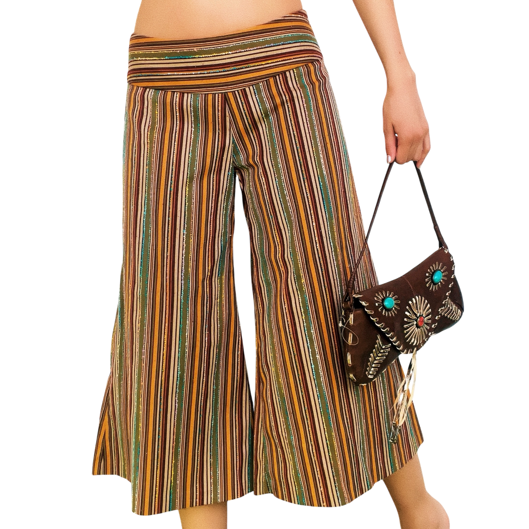 90s vintage striped wide leg gaucho-style capri pants