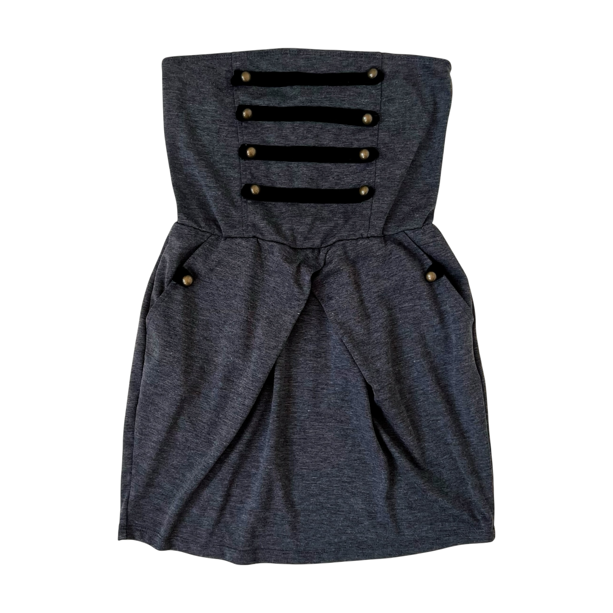 Vintage gray strapless military-style mini dress by old school Wet Seal!