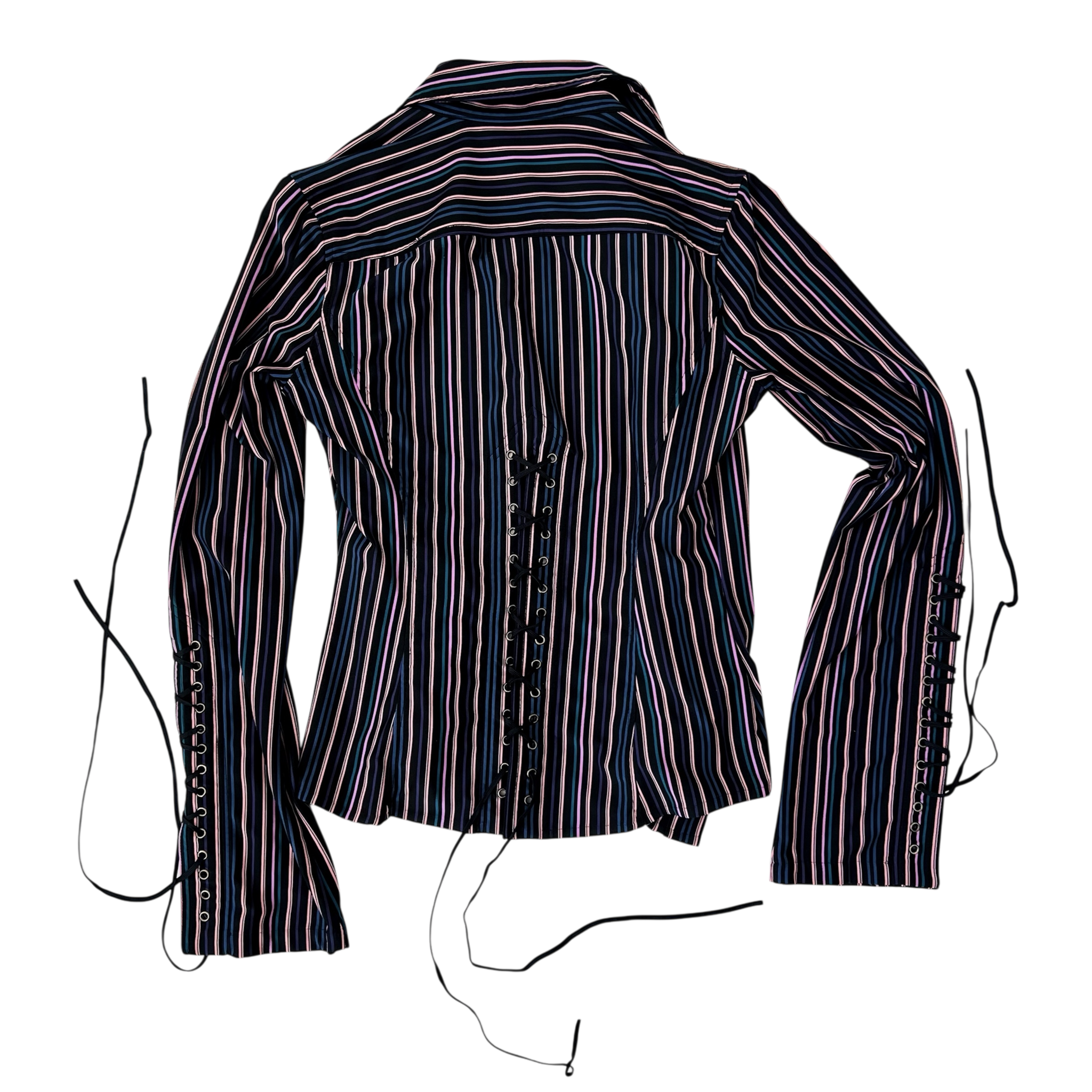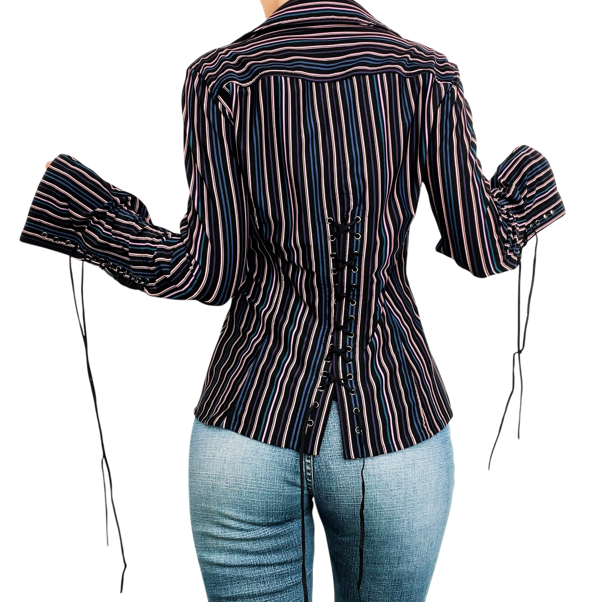 Button up blouse top with sexy lace up details on the back and sleeves!