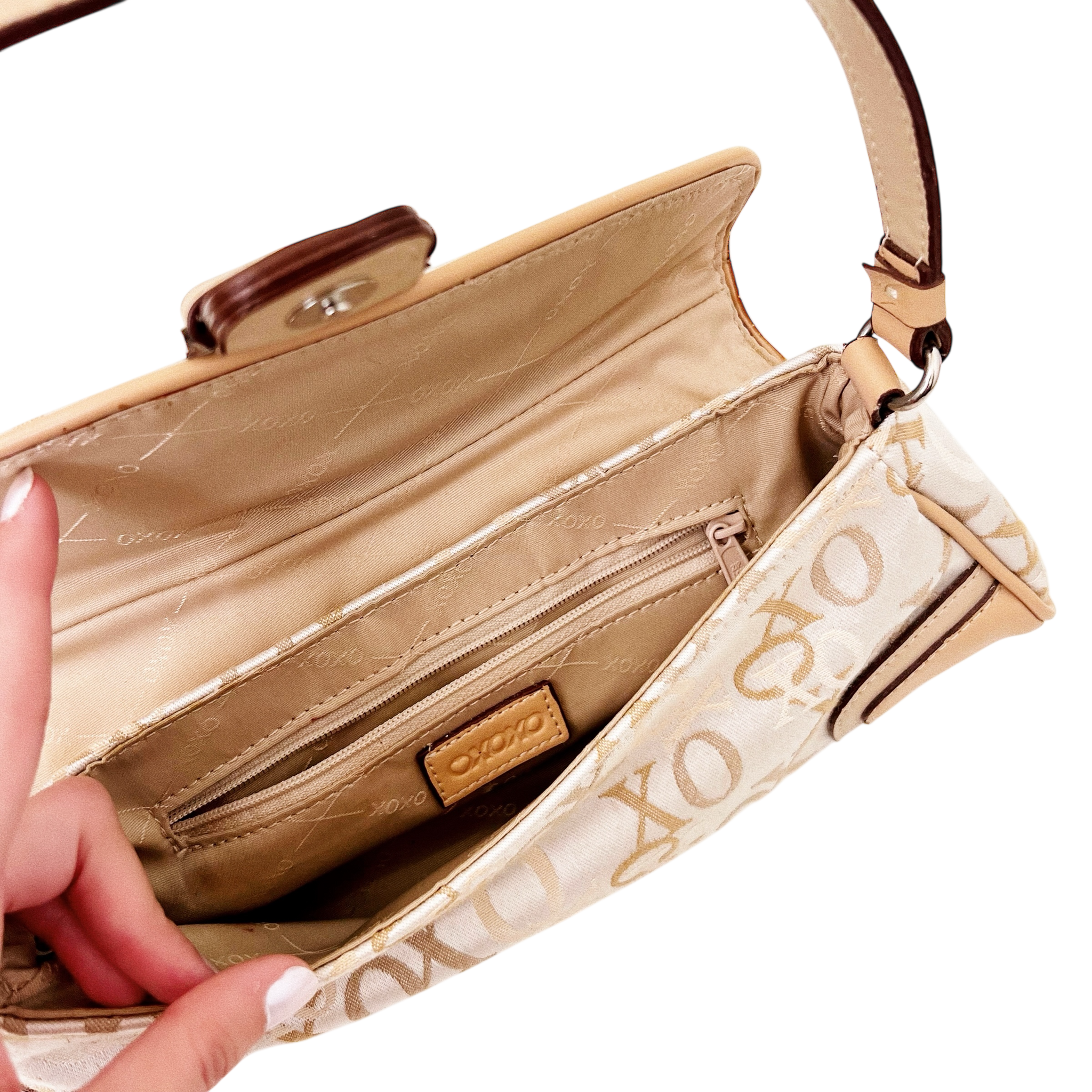 Monogram print baguette purse/shoulder bag, by XOXO!