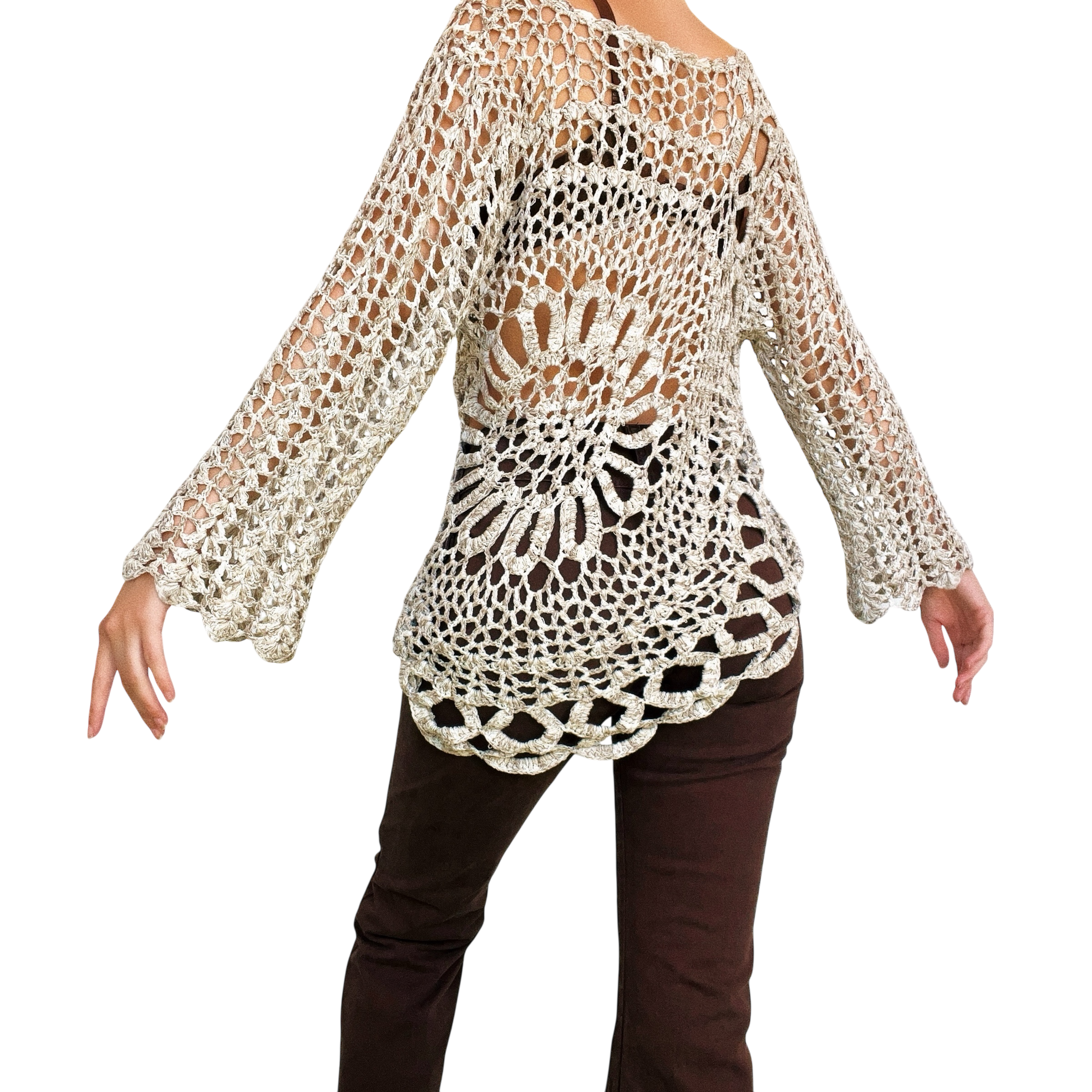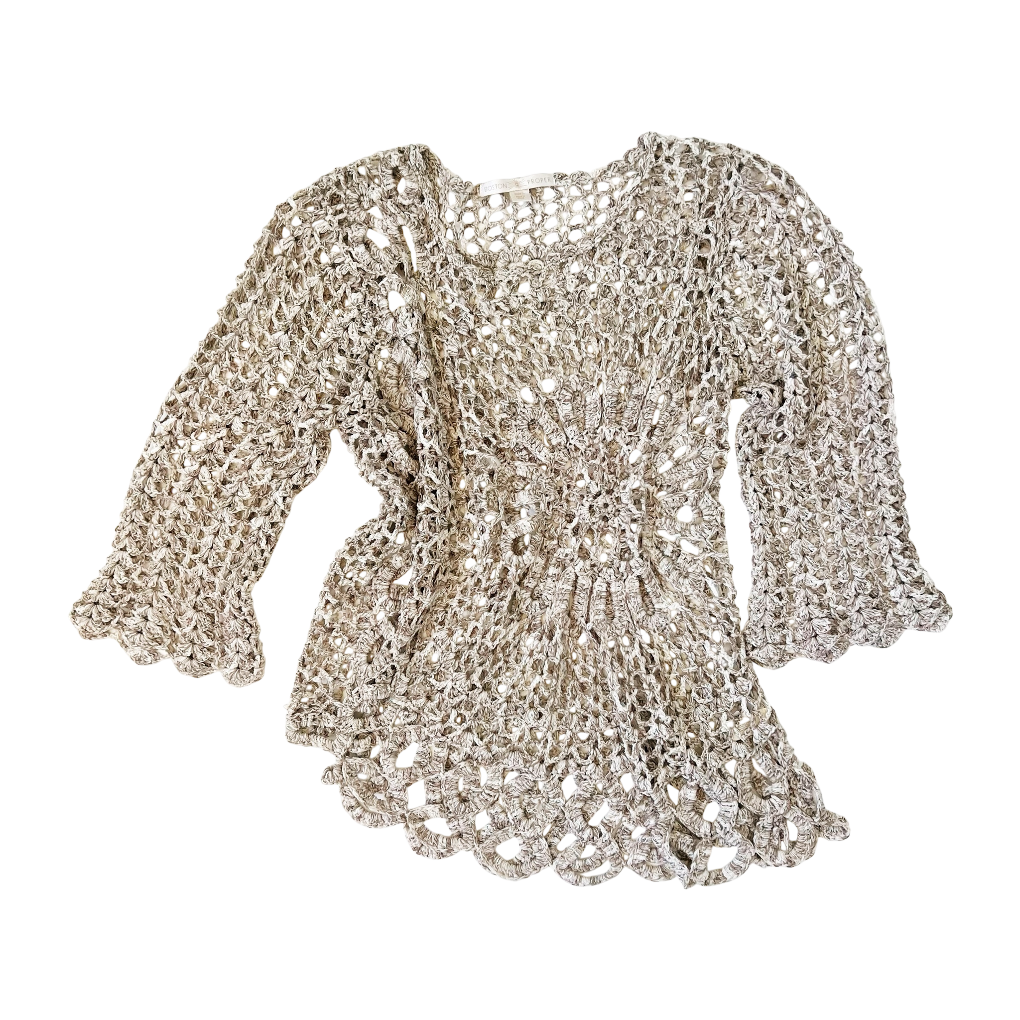The sweetest beige see-thru crochet top! Perfect layering piece!