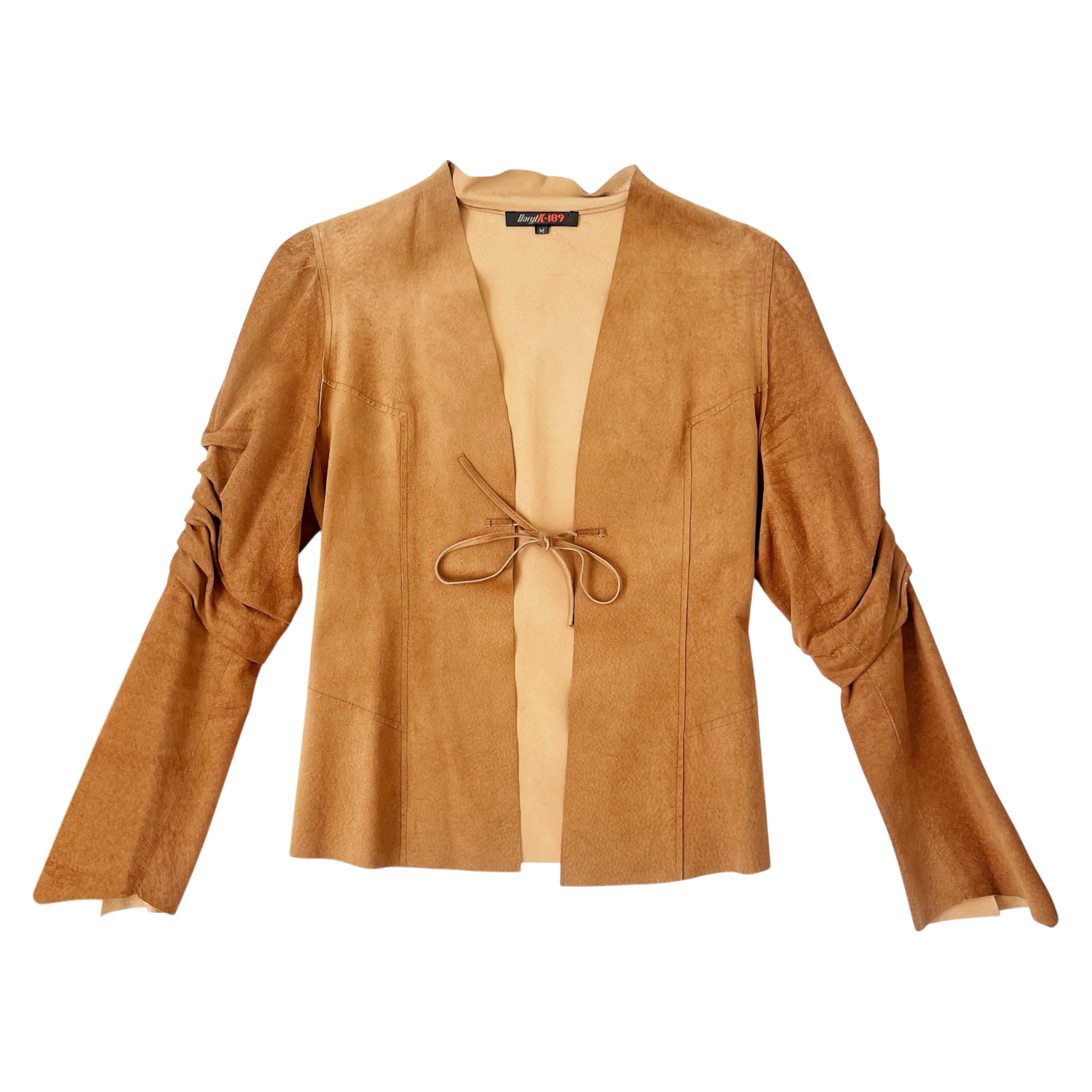 Vintage tan genuine suede leather shacket/lightweight jacket with a single front tie closure!
