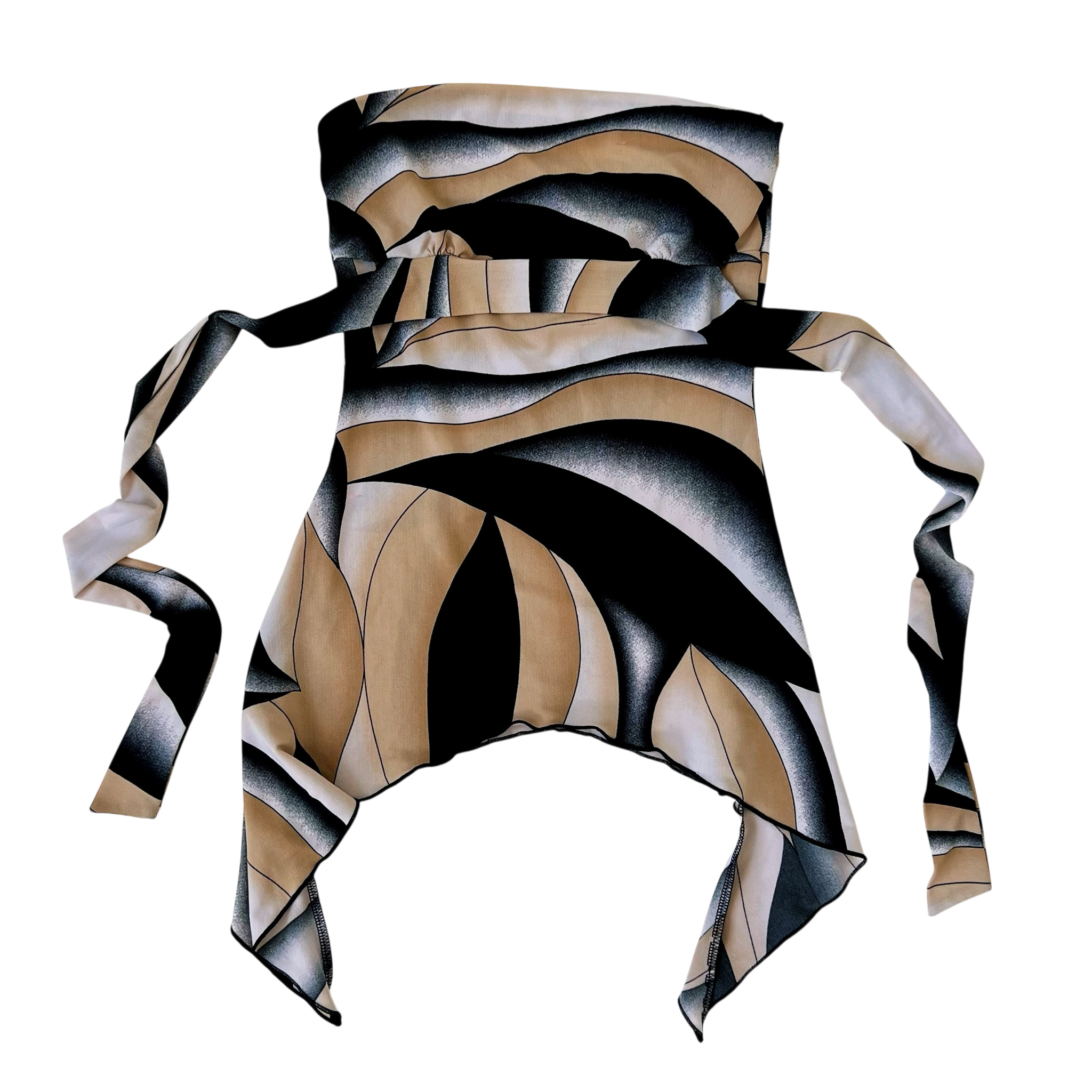 90s vintage tube top featuring an abstract design in a black/beige colorway!